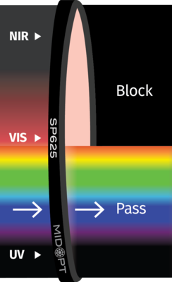 Optický filter MidOpt - SP625 dolný prepust 425 - 620nm