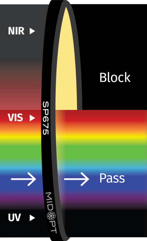 Obvykle jsou používány v monochromatických aplikacích, kde zlepší kontrast, rozlišení a konkrétní barvy. Většina MidOpt shortpass filtrů je spíše absorpční než reflexní, což je vhodné pro široké spektrum aplikací.