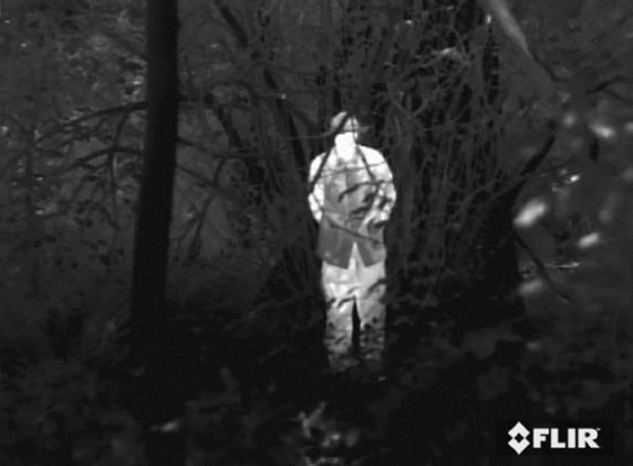 Na následujících obrázcích je patrní, že bezpečnostní termokamery lze, alespoň částečně, použít i pro pohled skrz zarostou oblast.