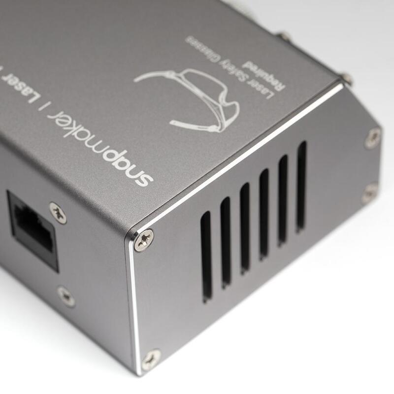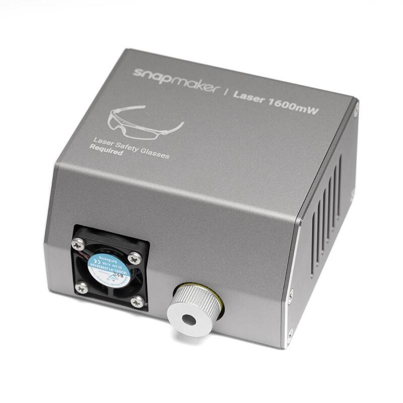 Laserová řezací hlava Snapmaker umí řezat materiály jako např. dřevo, kůži či lepenku. Je plně kompatibilní a zaměnitelná za originální laserovou hlavu, její výkon je však vyšší až 1600 mW oproti 200 mW.