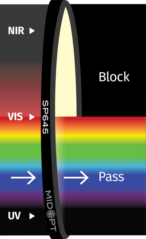 Zvyčajne sú používané v monochromatických aplikáciách, kde zlepšujú kontrast, rozlíšenie a konkrétne farby. Väčšina MidOpt shortpass filtrov je skôr absorpčná než reflexná, čo je vhodné pre široké spektrum aplikácií.